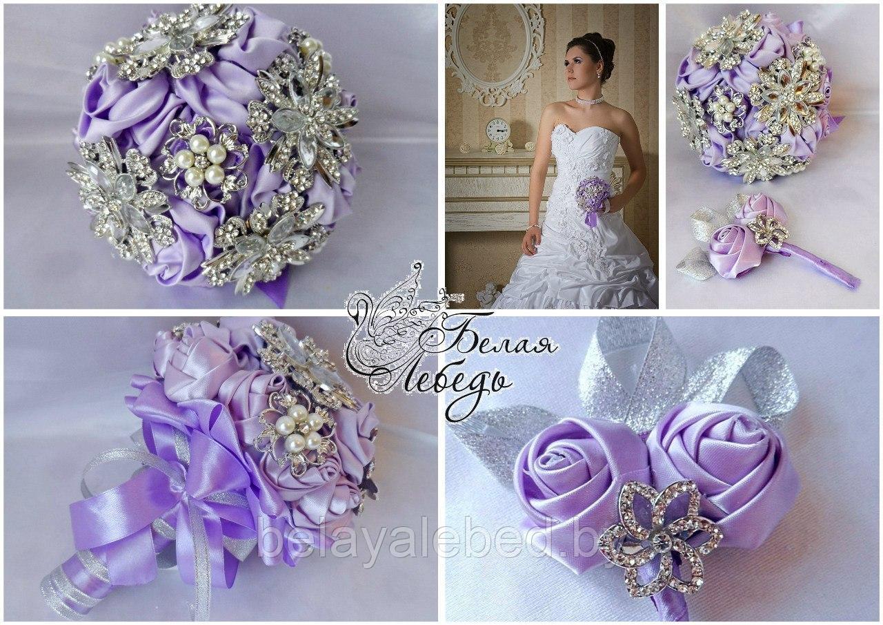 Великолепный букет из брошей и цветов ручной работы. Букет из брошей поразит всех окружающих своим великолепием и оригинальностью. Ваш букет никогда не завянет и будет радовать Вас и после свадьбы. К букету невесты прилагается бутоньерка для жениха выполненная в одной цветовой гамме.В наличии и под заказ в любой цветовой гамме.